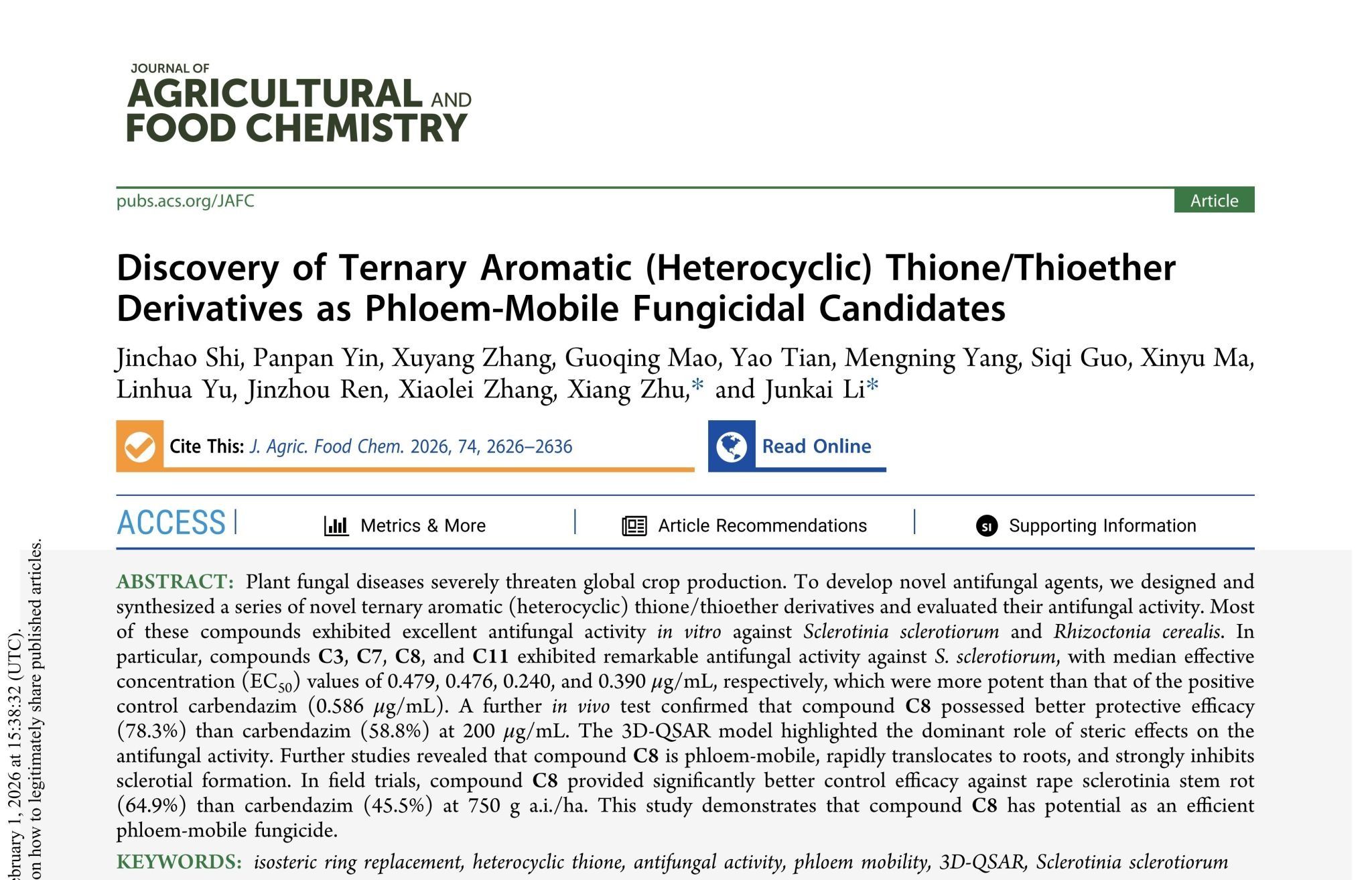 农学院博士研究生在农药学领域国际期刊发表封面论文