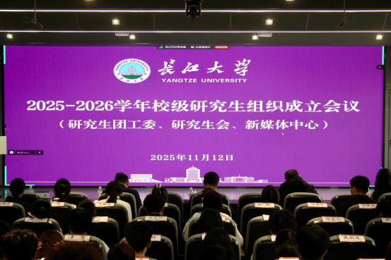 (通讯员 田泽琳 郭梓钰)11月12日下午,长江大学2025-2026学年校级研究生组织成立会议在东校区16教A313召开,武汉校区设分会场同步视频参会,会议由党委研究生工作部副部长黄龙主持。