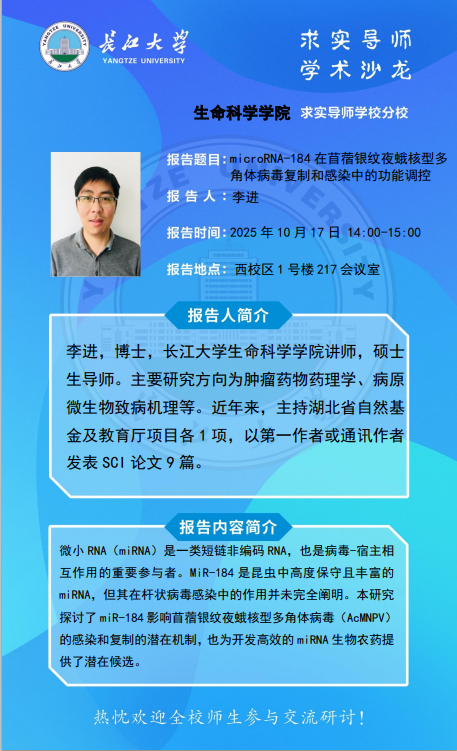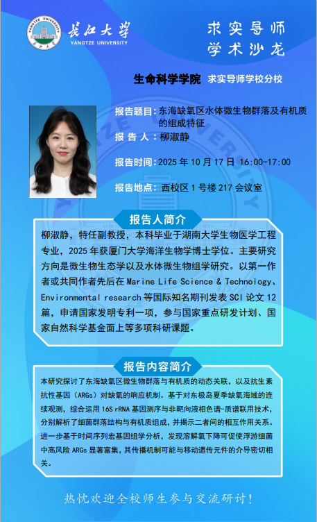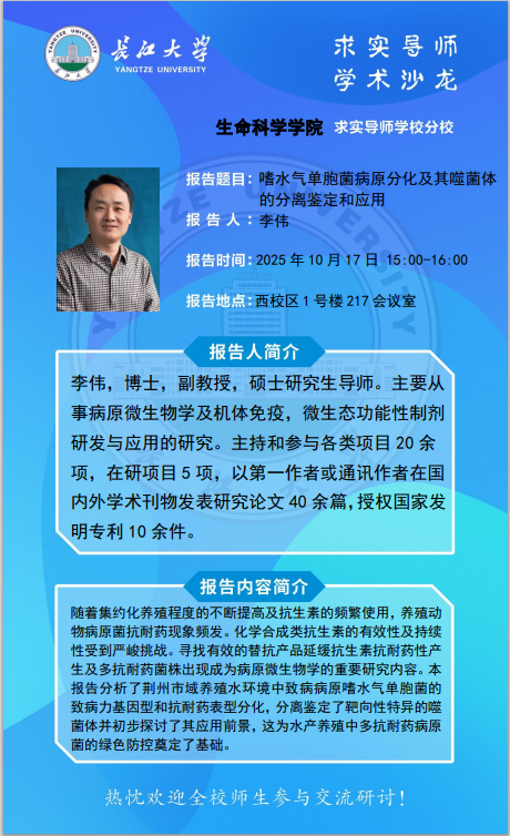 生命科学学院2025-2026学年“求实导师学术沙龙”讲座信息(10月17日)
