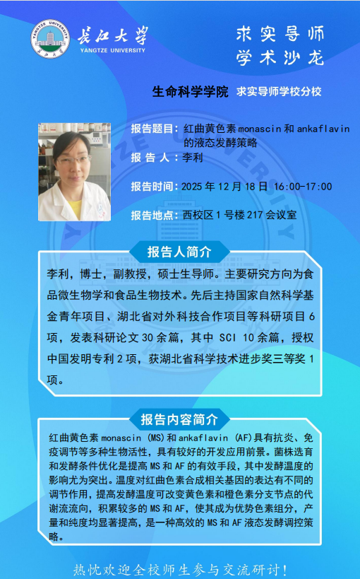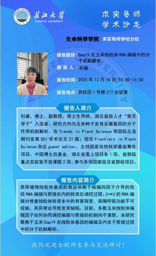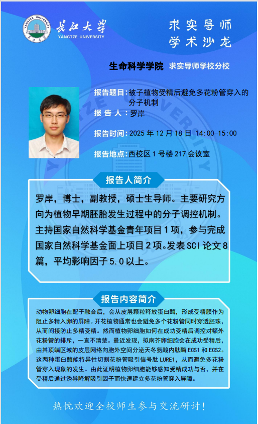 生命科学学院2025-2026学年“求实导师学术沙龙”讲座信息(12月18日)