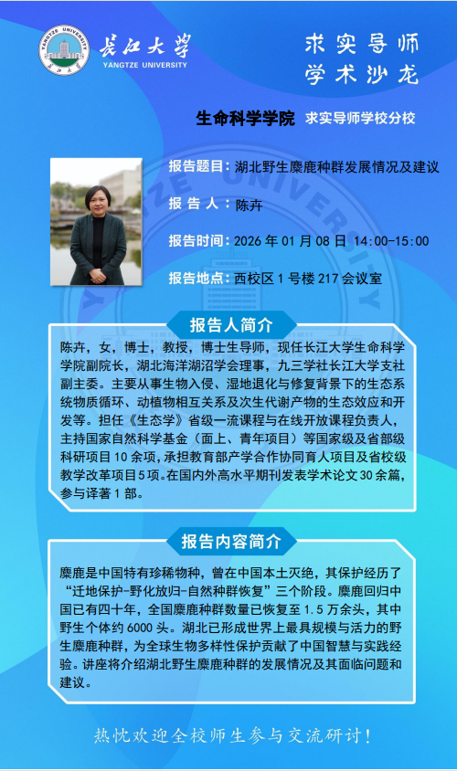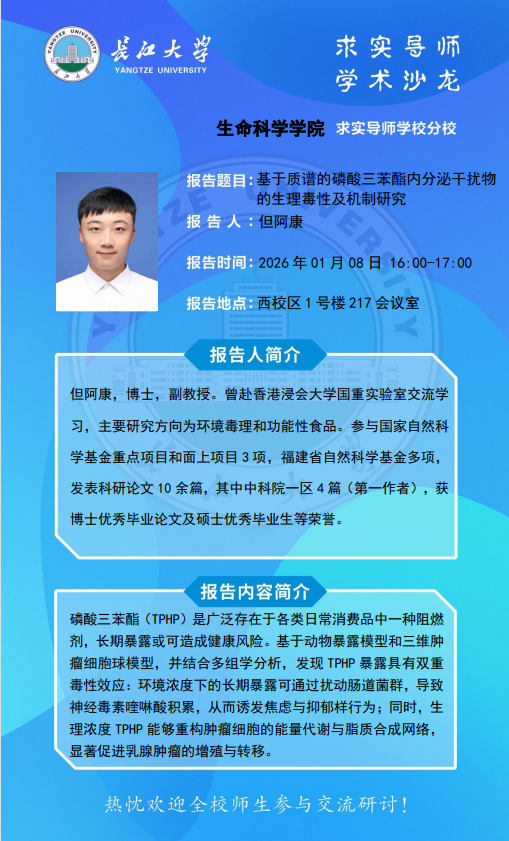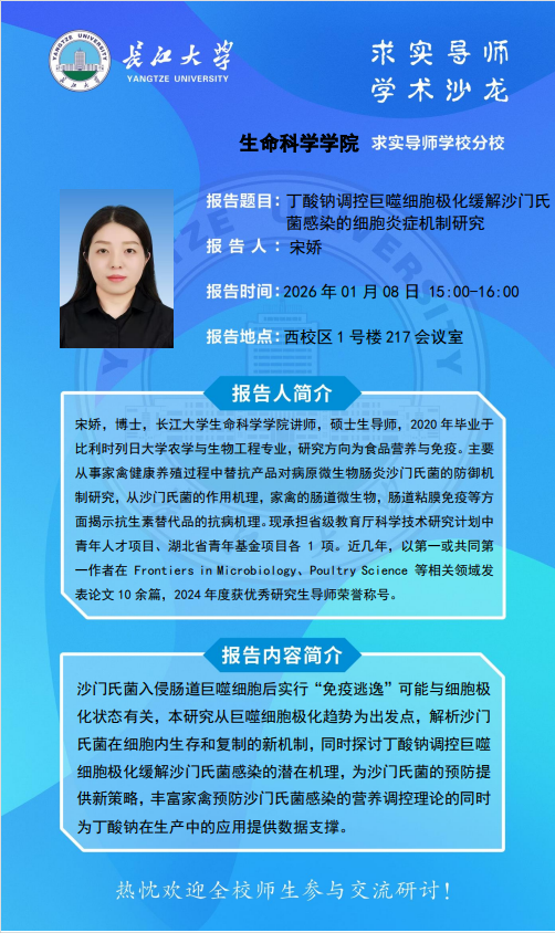 生命科学学院2025-2026学年“求实导师学术沙龙”讲座信息(1月8日)